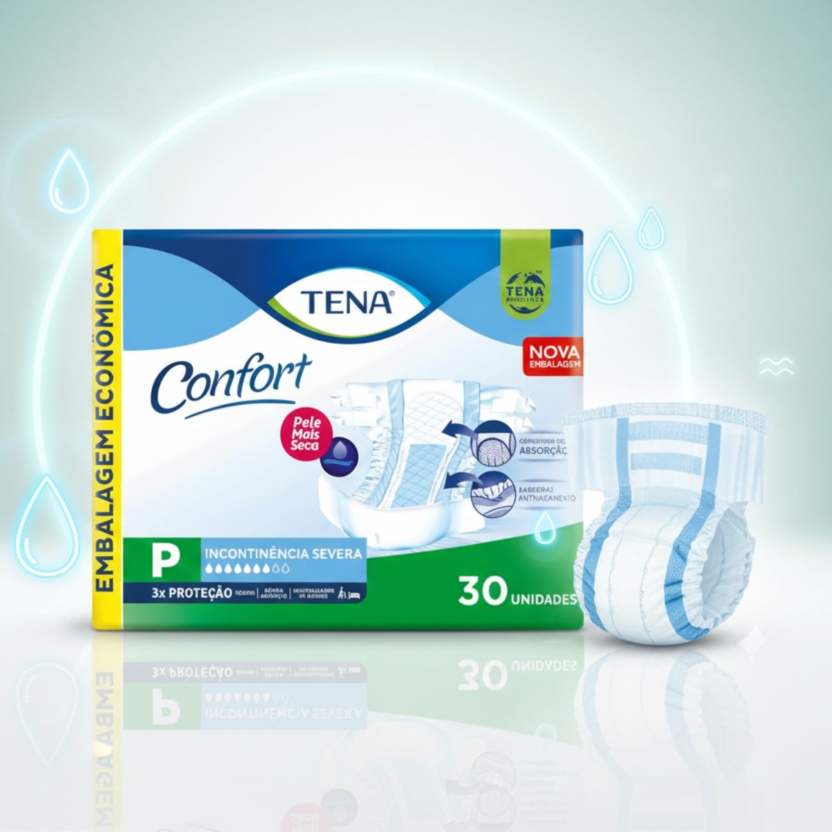 Carregando...A Fralda Geriátrica Tena Confort foi desenvolvida para oferecer proteção eficiente conforto e segurança para adultos e idosos que necessitam de cuidados com incontinência urinária ou fecal Seu formato anatômico no tamanho P proporciona ajuste adequado ao corpo ajudando a garantir mais discrição e liberdade de movimentos no dia a dia