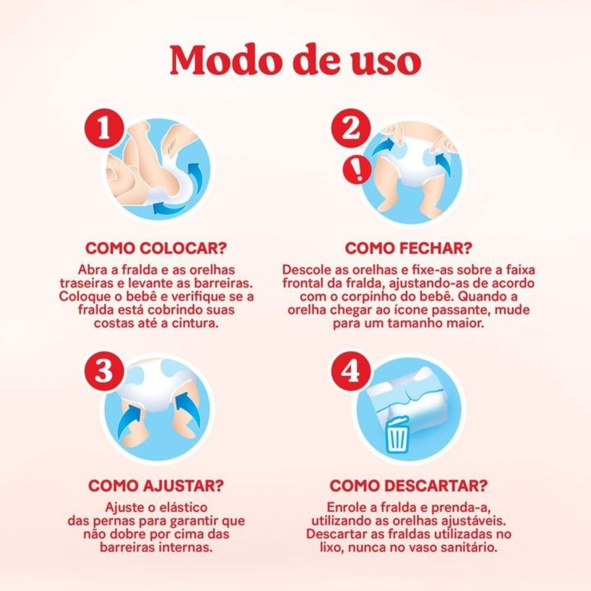 Ajuste suavemente as abas elásticas para melhor conforto.