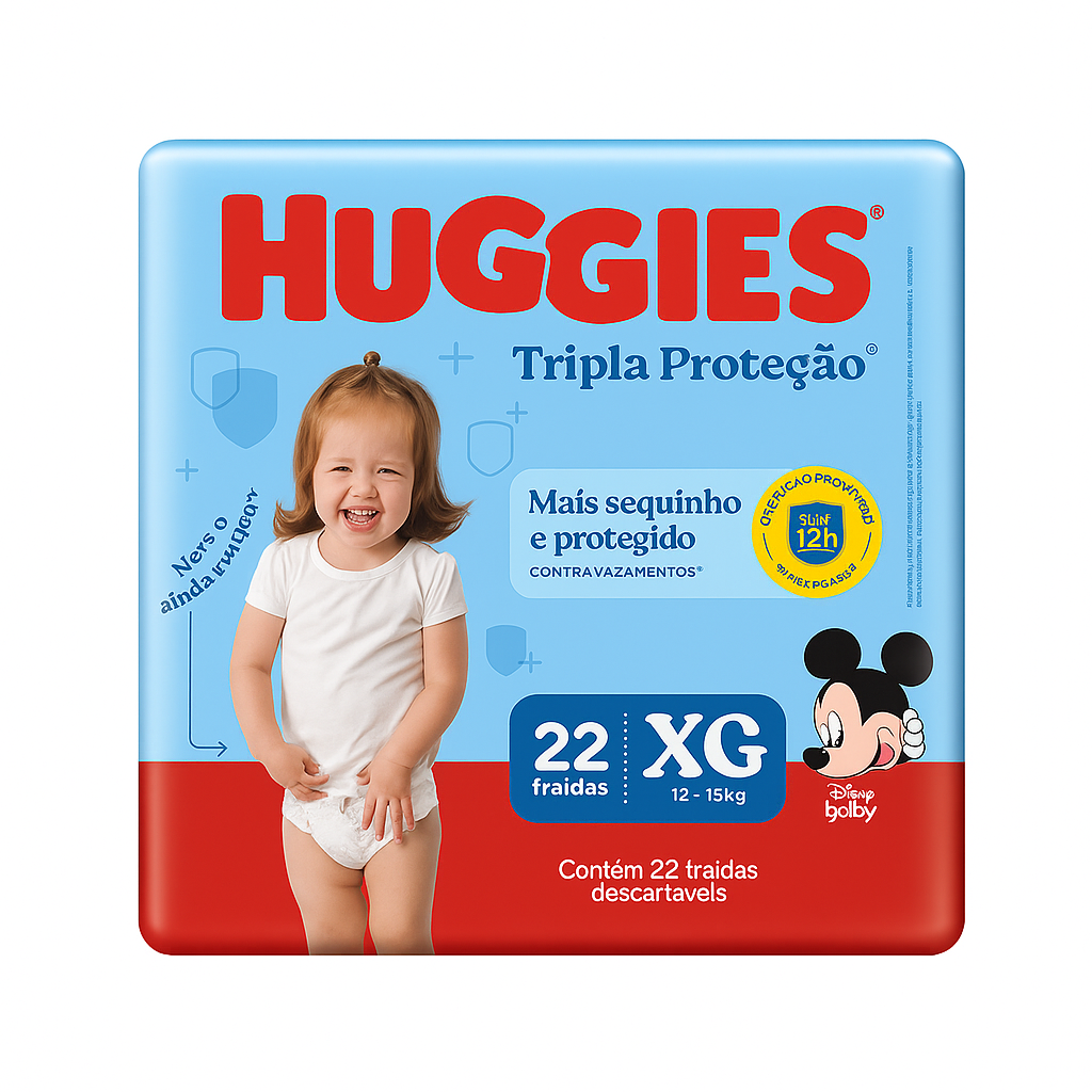 A Fralda Huggies Tripla Proteção Jumbo XG 22 Unidades oferece proteção completa e prolongada, ideal para acompanhar o bebê em todas as suas atividades. Sua tecnologia de tripla proteção mantém a pele sequinha por até 12 horas, ajudando a prevenir assaduras e proporcionando conforto ao longo do dia e da noite. Conta com barreiras antivazamento reforçadas, cintura elástica e ajuste seguro, que permitem liberdade de movimento sem abrir mão da proteção. Uma solução prática e confiável para o cuidado diário do bebê.