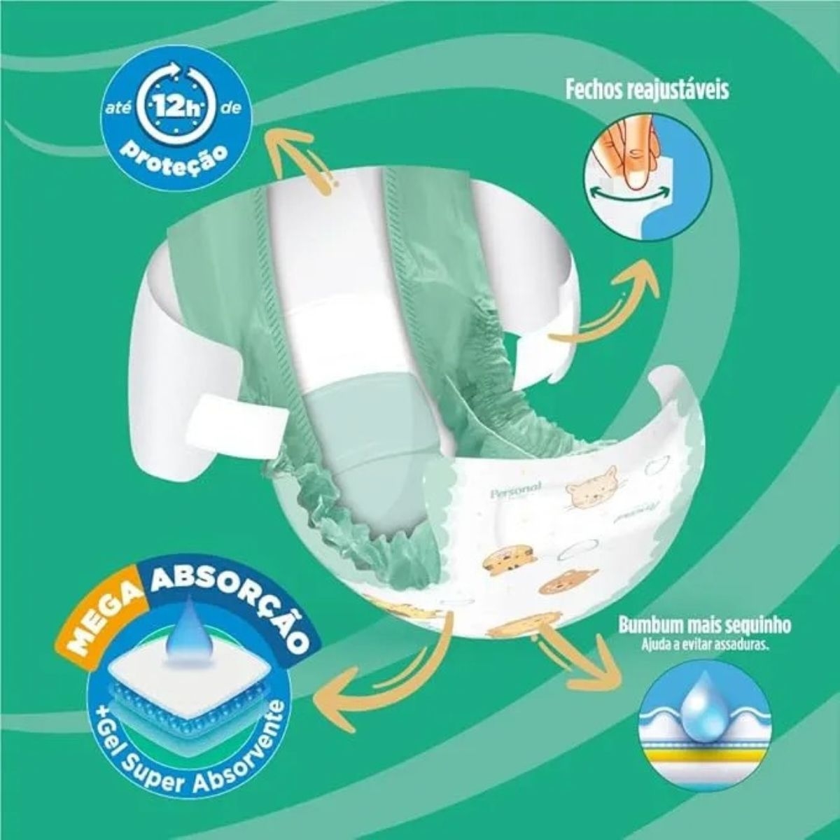 Carregando...A Fralda Personal Baby Protect & Sec foi desenvolvida para oferecer proteção confiável e conforto contínuo para o bebê durante o dia e a noite. Seu sistema de absorção ajuda a reter rapidamente a umidade, contribuindo para manter a pele mais seca e protegida por mais tempo.