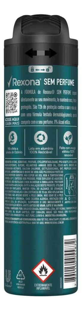 Carregando...O Rexona Men Sem Perfume Antitranspirante Aerossol 150ml foi desenvolvido especialmente para homens que preferem proteção eficaz sem fragrância. Com a tecnologia MotionSense™, o produto garante até 48 horas de proteção contra suor e mau odor, mantendo a pele seca e fresca durante todo o dia. Ideal para quem possui pele sensível ou utiliza perfumes e não quer misturar aromas, ele proporciona conforto e bem-estar sem irritar a pele.