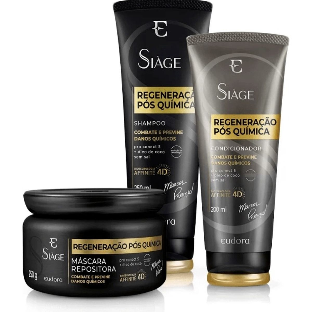 A linha Siàge Regeneração Pós Química é assinada pelo expert Marcos Proença e traz o complexo tecnológico Pro Conect 5 + Óleo de Coco, promovendo o religamento das pontes capilares dos fios ressecados e quebrados por agressões químicas, garantindo resultados de salão para os cuidados capilares diários.