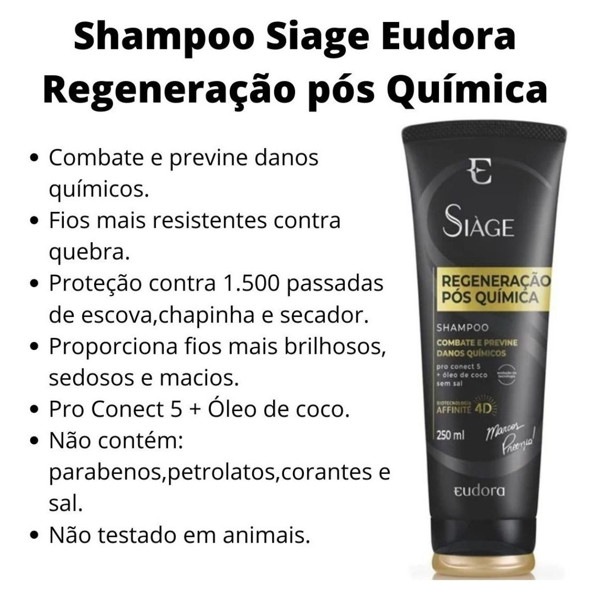 Com tecnologia inteligente Affinité 4D, seus ativos detectam os danos do cabelo, tratando os fios até a camada mais profunda mesmo após o enxágue. O Shampoo Siàge Expert Regeneração Pós Química proporciona fios com brilho extremo, toque sedoso e maciez diária.