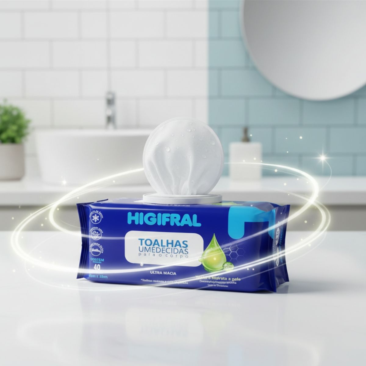 Carregando...A Toalha Umedecida Higifral Adulto foi desenvolvida para proporcionar higiene prática conforto e cuidado diário para adultos e idosos